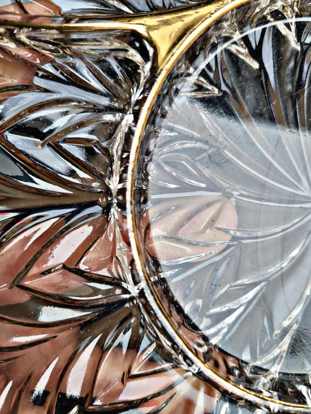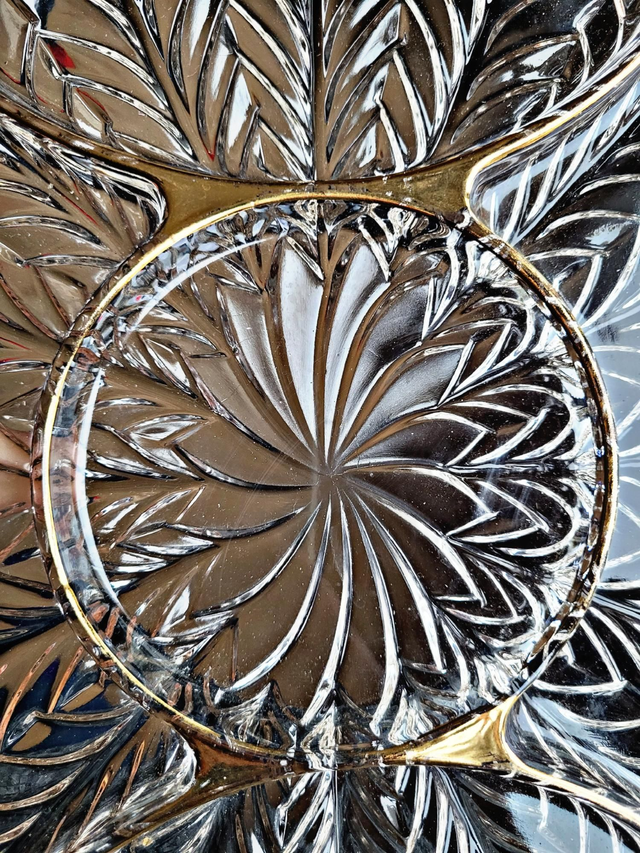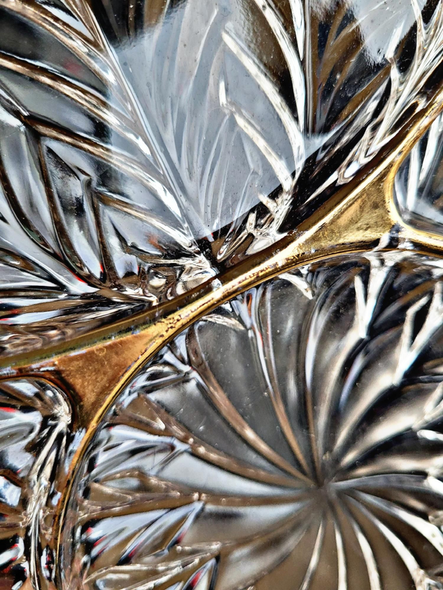 Serviteur apéritif à anses en verre moulé et dorure, vintage