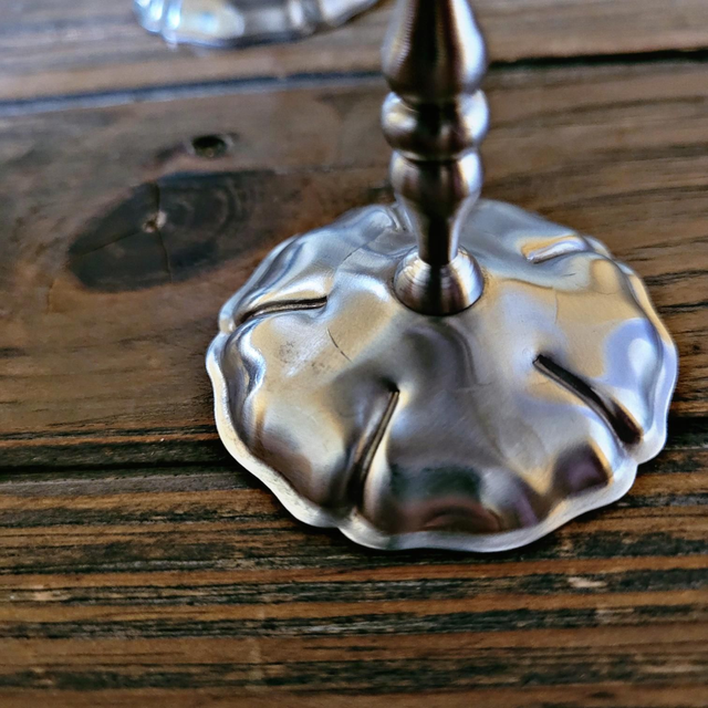 Lot de 12 coupes ou coupelles à glace (sorbet) vintage en inox. Peuvent être aussi utilisées en verre à cocktail ou pour un autre dessert (salade de fruits…). Forme de "fleurs", tige du pied joliment travaillée. Années 70-80.