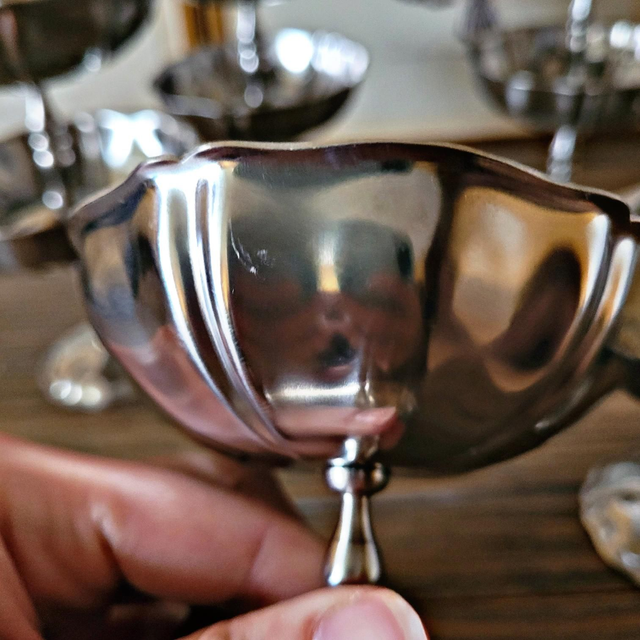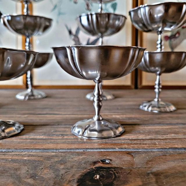 X Coupelles / coupes à glaces vintage en inox, forme de fleur