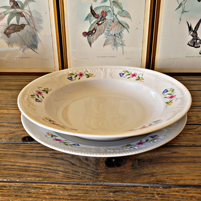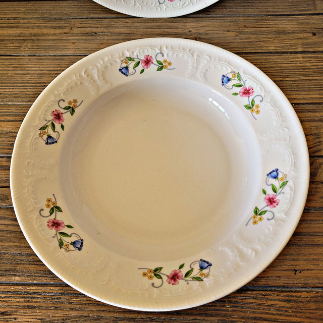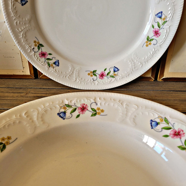 X Plats ronds (dont un creux) Tognana porcelaine Italie, fleurs