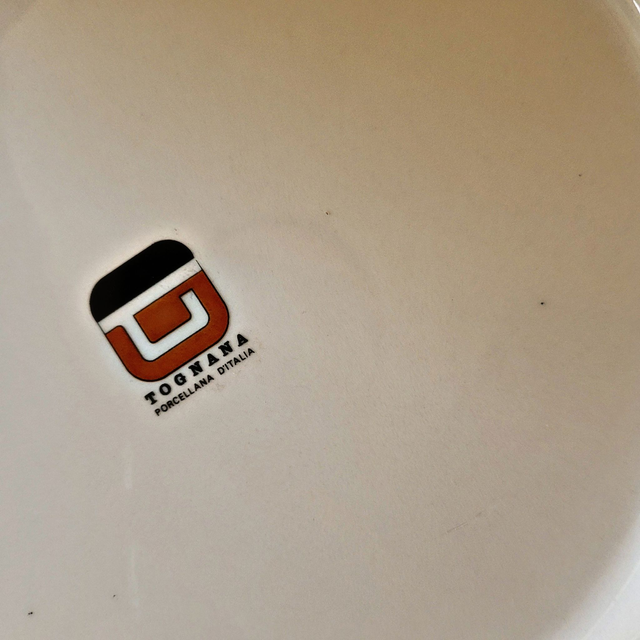 Lot de 2 plats ronds dont un creux en porcelaine d’Italie marque Tognana.
