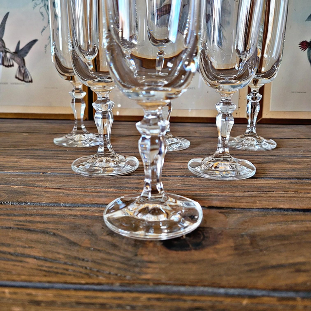 Ces flûtes à champagne en cristal vintage ont été pensées pour accompagner les grands moments, ceux que l’on aime marquer d’une touche d’élégance et de lumière. Leur jolie jambe de style mirabeau, fine et équilibrée, leur confère une allure élancée et raffinée, idéale pour faire scintiller les bulles !